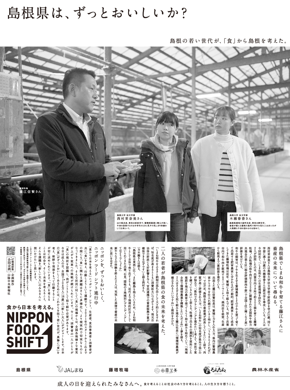 二人の若者が島根県の食の未来を考えた。