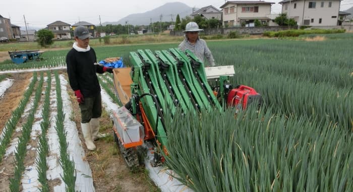 1世帯あたりのうどん消費量が日本一の香川県。薬味に欠かせない葉ねぎも古くから栽培され、近年は購入後すぐ調理できるカットねぎの需要が全国的にも伸びています。こうした加工・業務用の葉ねぎは根を地中に残したまま地上部だけを収穫するので、1回の植付けで年3回は収穫が可能です。収入の安定化にもつながり契約栽培を始める農家が増えていますが、収穫はすべて手作業で労力がかかるため、生産拡大の妨げにもなっていました。